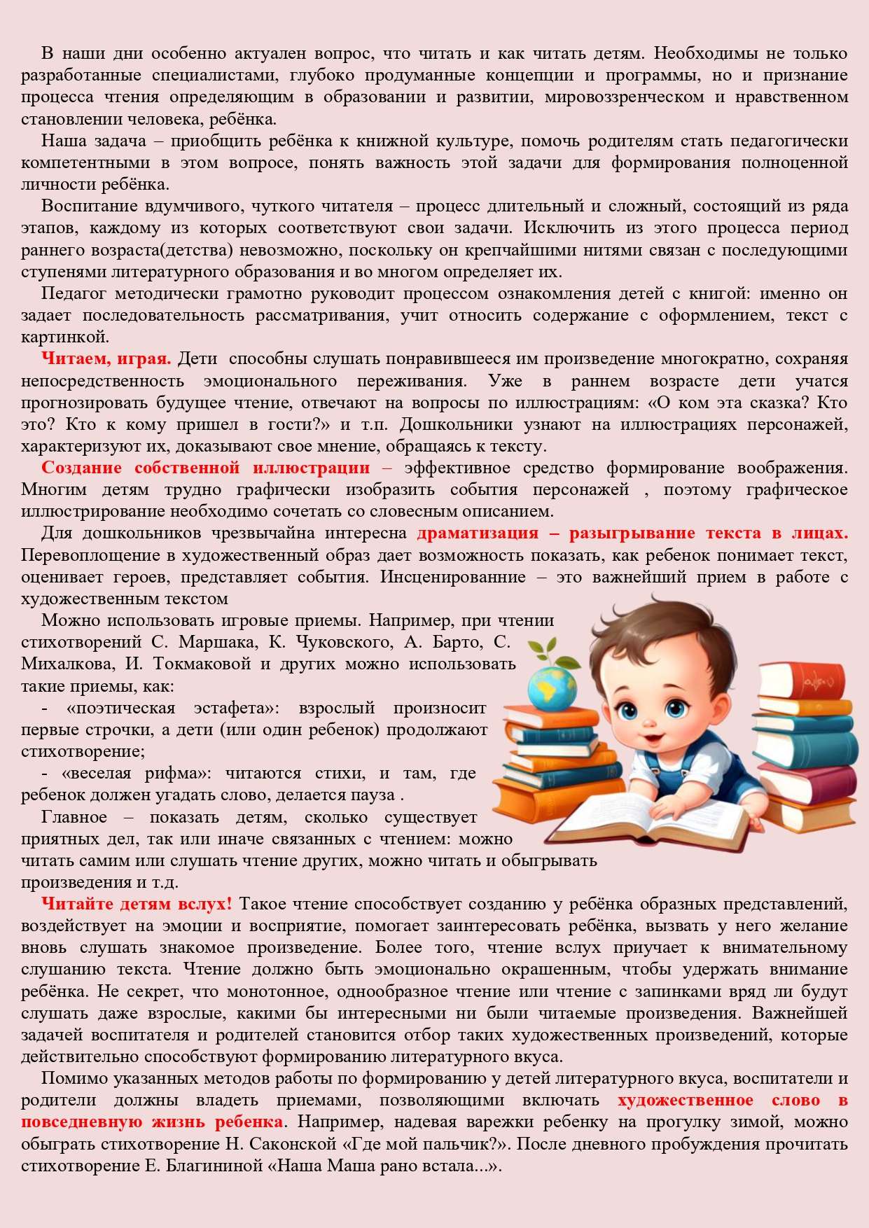 3. Литературное направление: прослушивание рассказов и стихотворений, произведений устного народного творчества, рассматривание иллюстраций в книгах, проведение бесед по прослушанным текстам, обучение выразительному чтению стихов.
