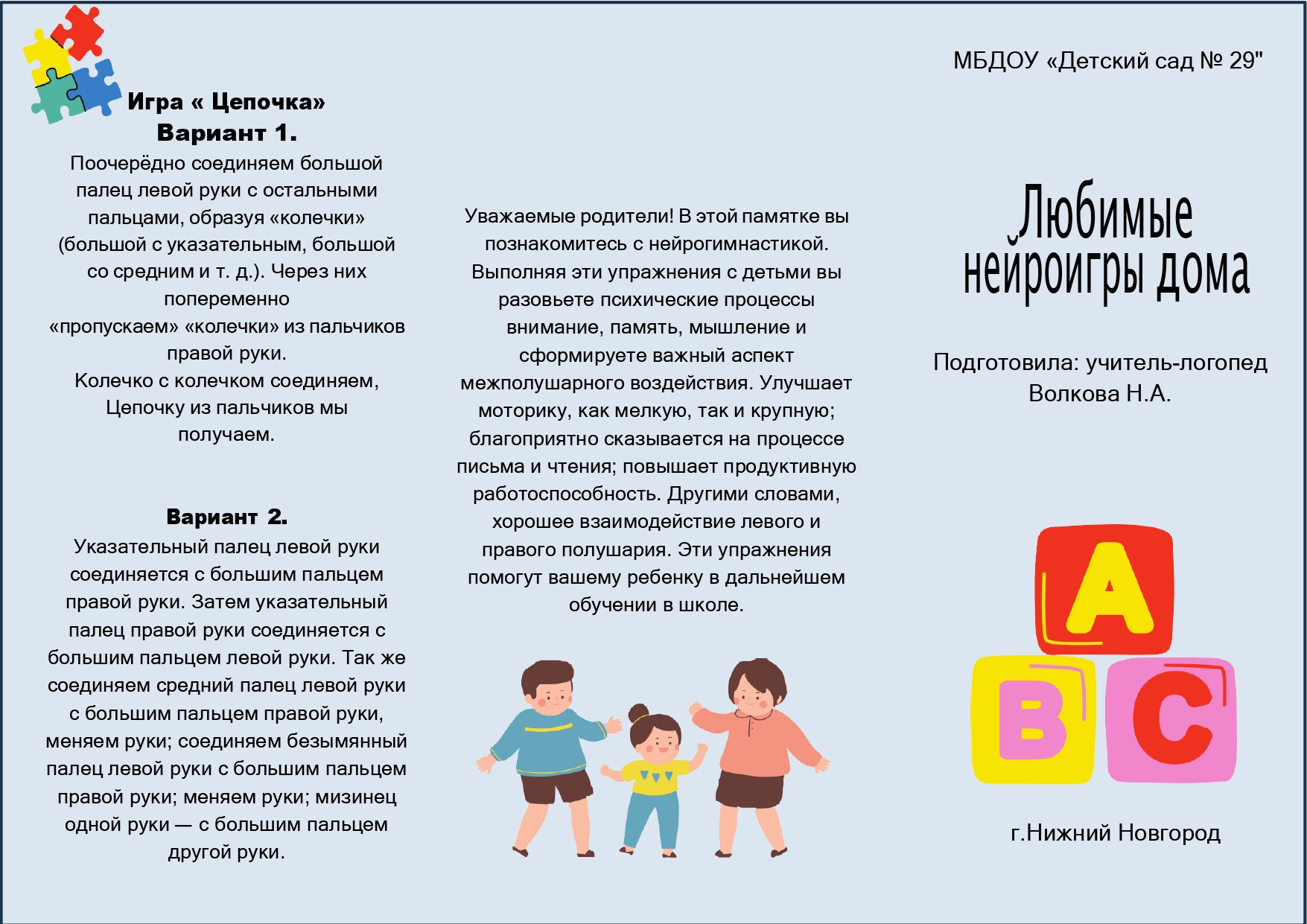 Нейропсихологический подход предполагает коррекцию нарушений речевых и психических процессов ребёнка через движение.Предлагаю использовать нейроигры с речевым материалом, когда ребёнок синхронизирует выполнение двигательных упражнений с проговариванием отдельных звуков, слогов, чистоговорок, потешек, стихотворений. Данные игры на координацию речи с движением, позволяют не только эффективно воздействовать на развитие познавательных процессов, общей и мелкой моторики, мыслительной деятельности, а также способствуют улучшению звукопроизношения, ритмичности речи, её интонационной выразительности, формированию правильного речевого дыхания. Данные игры я применяю на логопедических занятиях на всех этапах:от постановки звуков до их автоматизации в речи .