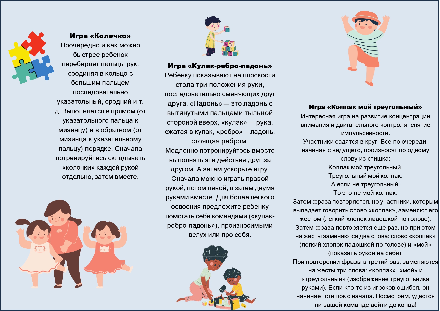 «Весёлые мячики» Игры с мячиками улучшают общую и мелкую моторику, чувство ритма, развивают зрительное внимание, фонематический слух, межполушарное взаимодействие, так как пересекается срединная линия тела и работают две руки почти всегда одновременно).Дети играют парами, проговаривая чистоговорки или потешки, перекладывают мячики: из правой руки в левую и наоборот; передают соседу и наоборот; делают перекрёстные движения.