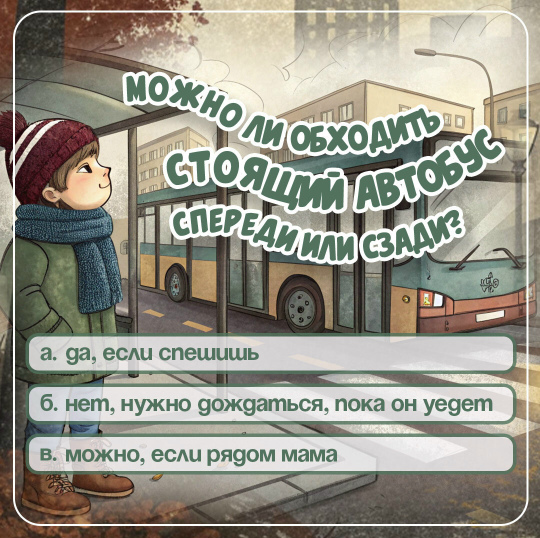 Не обходите стоящий автобус ни спереди, ни сзади!