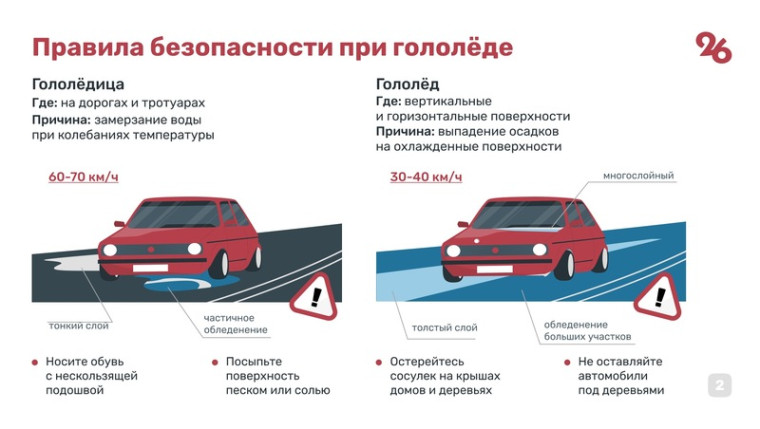 Двигаться нужно только по засыпанным песком участкам дорог или по снегу.